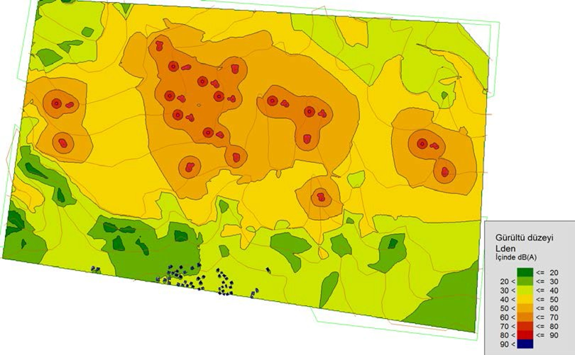 standartları kapsamında gerçekleştirilmektedir. Tesislerin gürültü etkilerini gösteren gürültü haritaları Lgag, Lgündüz, Lakşam periyotları için hazırlanmaktadır.